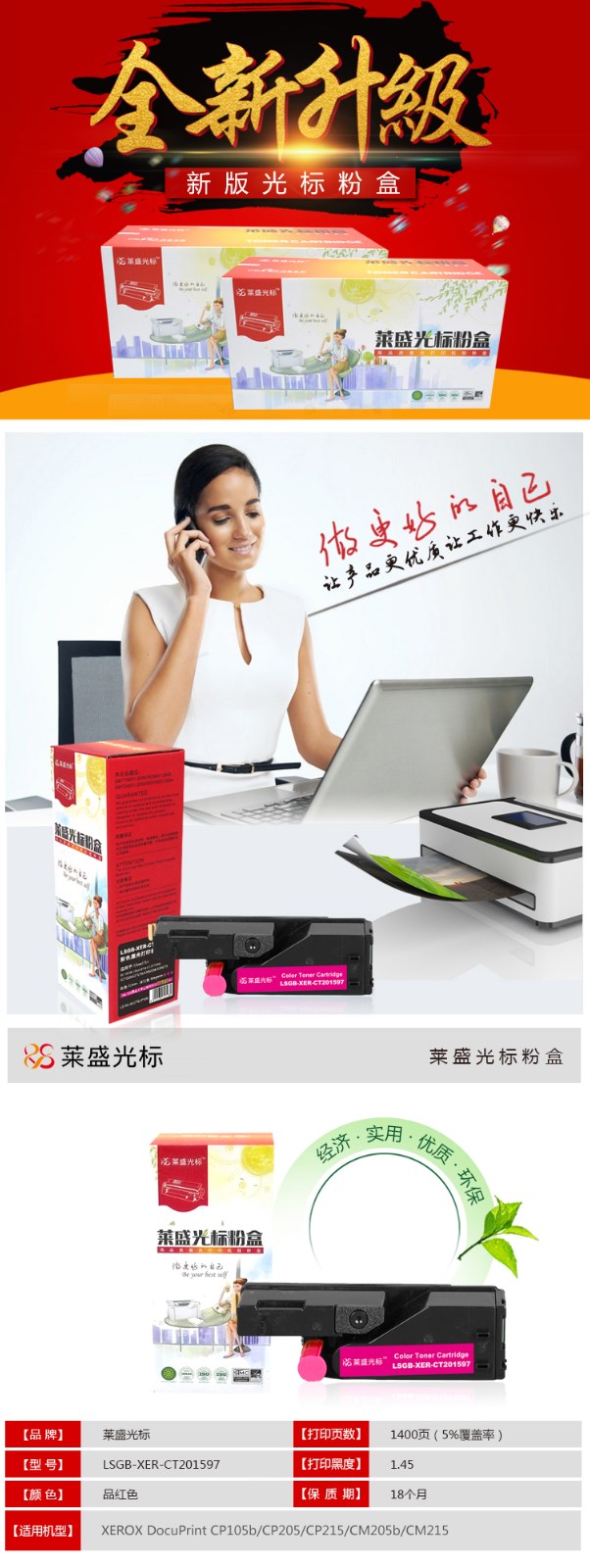 萊盛光標(biāo) LSGB-XER-CT201597 硒鼓 (品紅色)適用于XEROX DocuPrint CP105b/CP205/CP215/CM205b/CM215